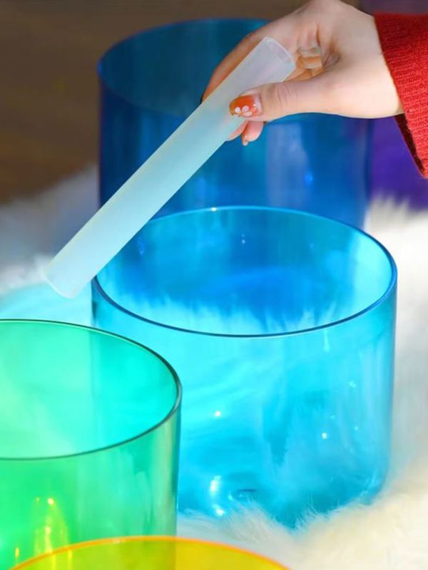 Many different colors of singing bowls are scattered across the red floor, and an important factor to consider when choosing a singing bowl is where and how it will be used. Crystal singing bowls are a good choice if you use them while traveling or outdoors. Pros: crystal singing bowls are generally lightweight, so girls can easily carry them. Crystal singing bowls come in a variety of colors and are very beautiful in the sunlight. Crystal singing bowls have a clear high frequency ring and they harmonize very well when played in nature.